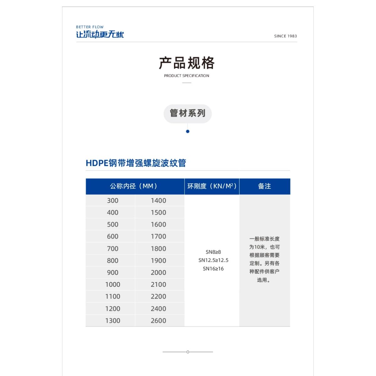 “永高”牌鋼帶增強(qiáng)聚乙烯(PE)螺旋波紋管是由高密度聚乙烯在熔融狀態(tài)下和經(jīng)防腐處理過的鋼帶復(fù)合并纏繞成型的管道,中間經(jīng)彎曲處理的鋼帶使管道具有較強(qiáng)的剛度。外層經(jīng)聚乙烯包裹后避免了鋼帶的腐蝕并使得管道內(nèi)壁光滑。在鋼帶和聚乙烯之間采用特殊材料作為過渡層,使得兩種材料粘合牢固、可靠。適用于大埋深的排污工程。