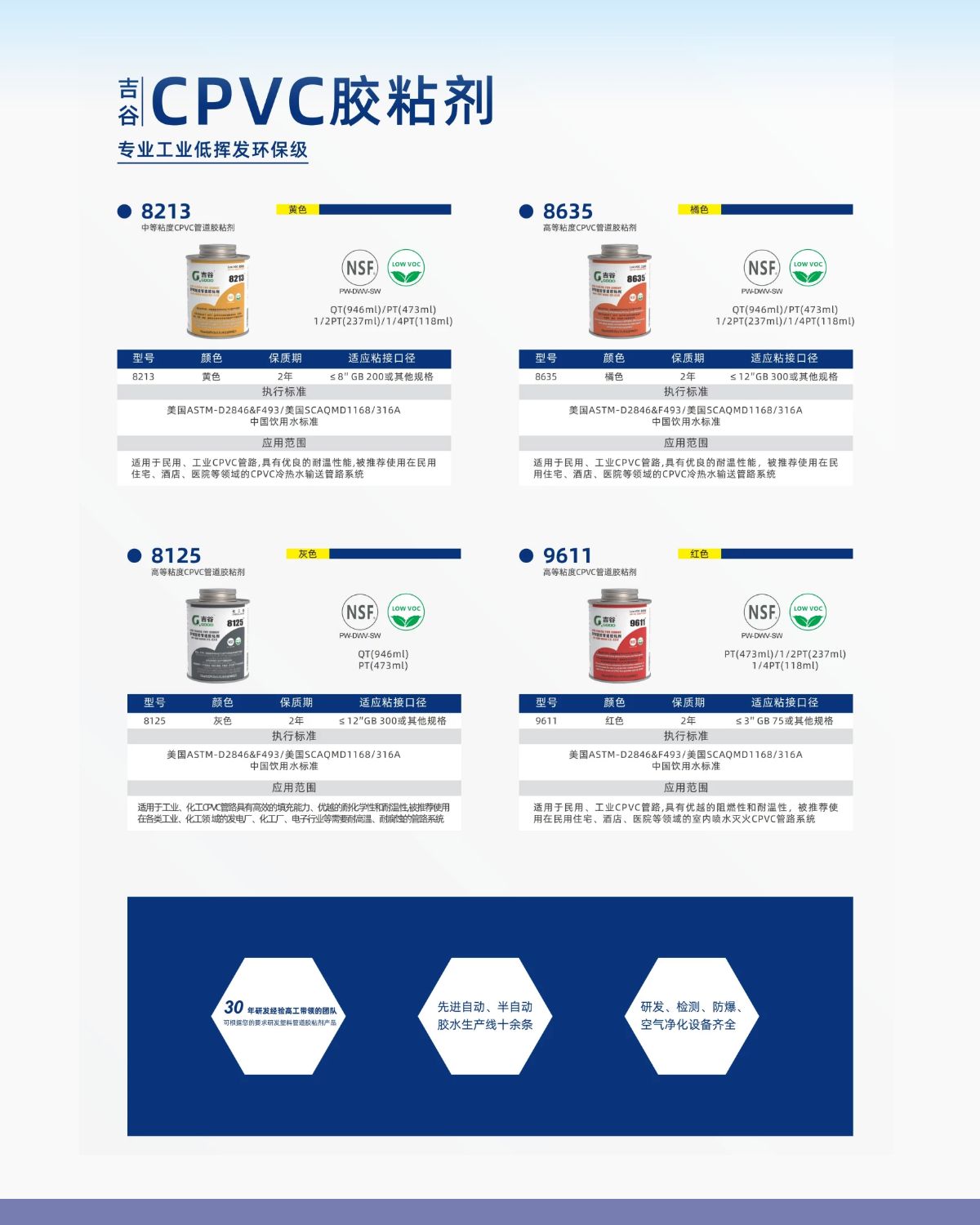 預(yù)粘膠有良好的清潔軟化粘接表面,使得膠水更容易滲透粘接表面,達(dá)到粘接最大強(qiáng)度。低揮發(fā)低揮發(fā)LovVOC環(huán)保級(jí)。應(yīng)用在民用或工業(yè)PVC/CPVC/ABS管道粘接口清潔軟化,施工環(huán)境和天氣苛刻條件時(shí),特別是大口徑裝配,可降低粘接難度。